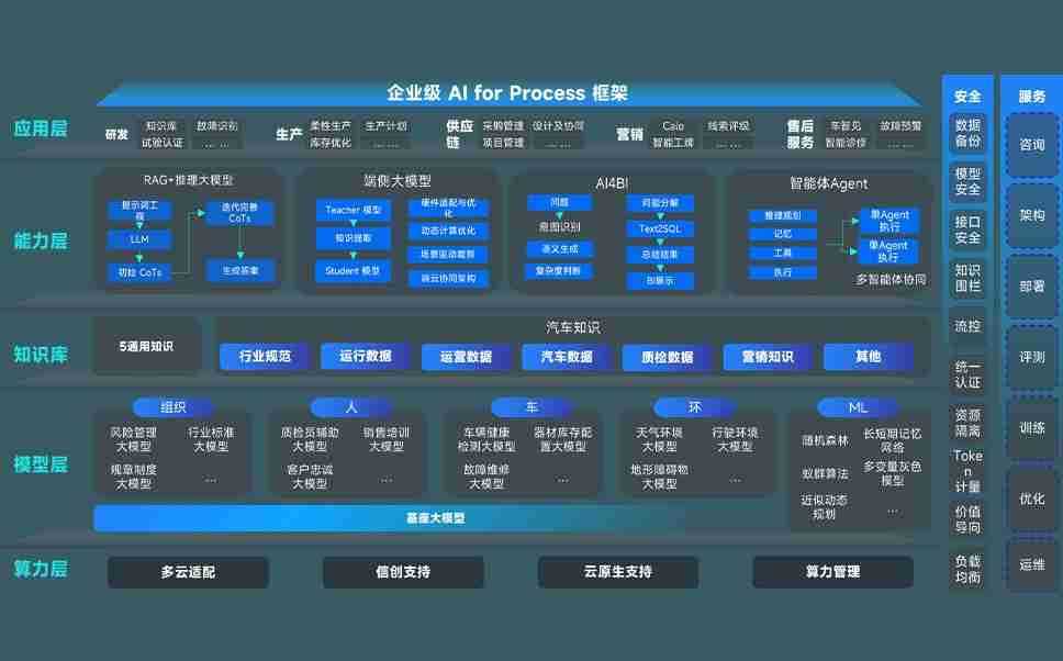 z6com尊龙问学智车解决方案是一套基于AI技术的汽车行业智能化系统,,覆盖从底层算力到顶层AI应用的全栈方案。。。方案由算力层、、、、模型层和应用层组成:算力层,,,方案支持多种一体机配置,,,具备云端灵活部署、、、、多云适配以及动态优化计算资源的能力;模型层,,,,z6com尊龙问学平台版提供了企业级AI应用一站式构建与管理平台,,支持基于后训练强化技术的汽车企业专属模型的训练、、、评测和运营;应用层,,,,z6com尊龙问学DeepSeek版提供包括超级员工、、智能招采、、、智能营销、、智能客服、、、、AI for BI等一系列解决方案,,,,可助力汽车行业实现数字化转型,,让管理更智能、、、、响应更敏捷。。。。